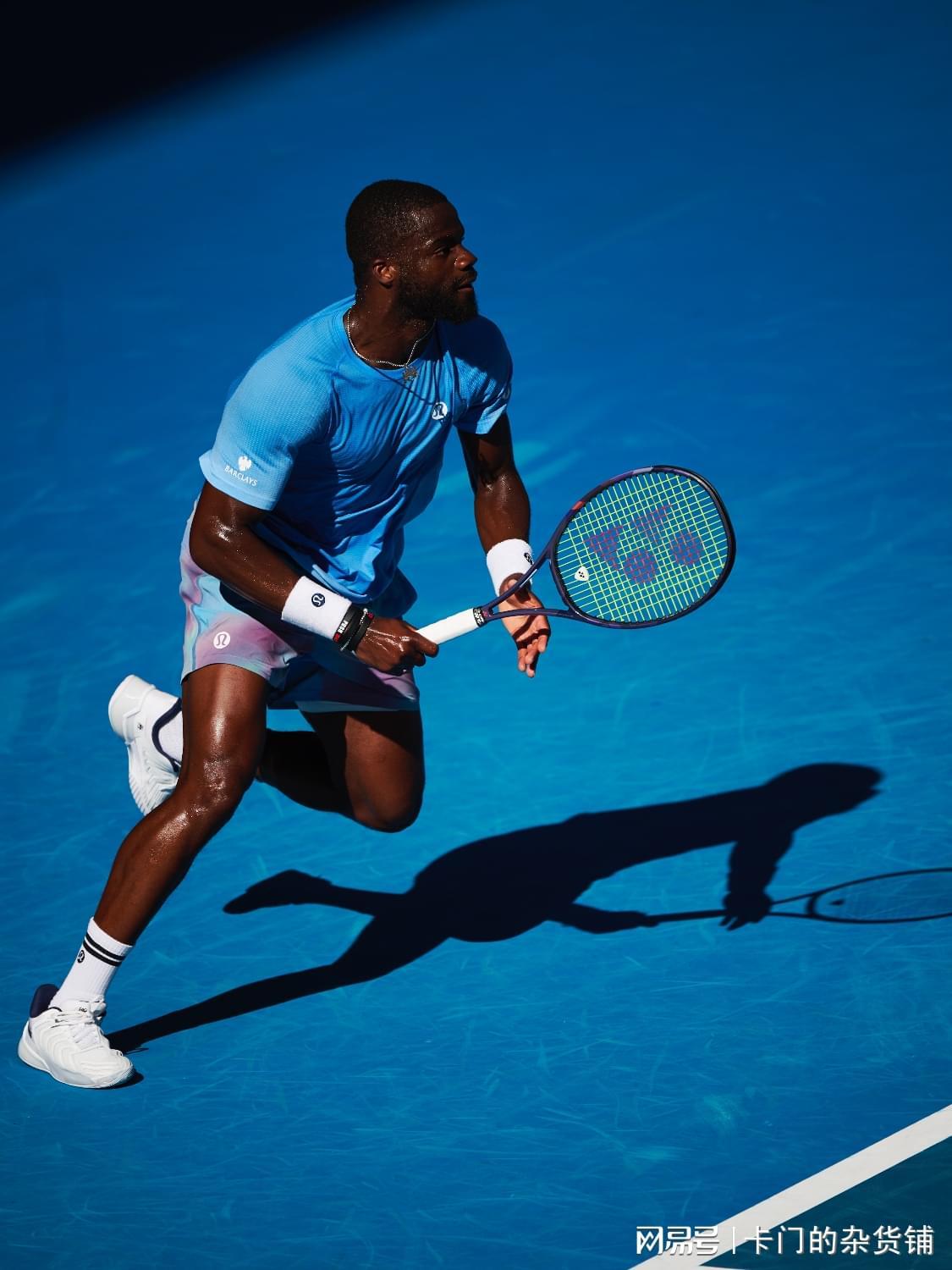 本届澳网,作为运动生活方式品牌lululemon的大使,他以一身蓝色、绿色、白色为主色调的战袍亮相,致敬他父母的故乡塞拉利昂。这一设计由他和lululemon的设计师共同完成,灵感源自网球击打瞬间所迸发的能量与速度并呼应塞拉利昂的国旗配色。